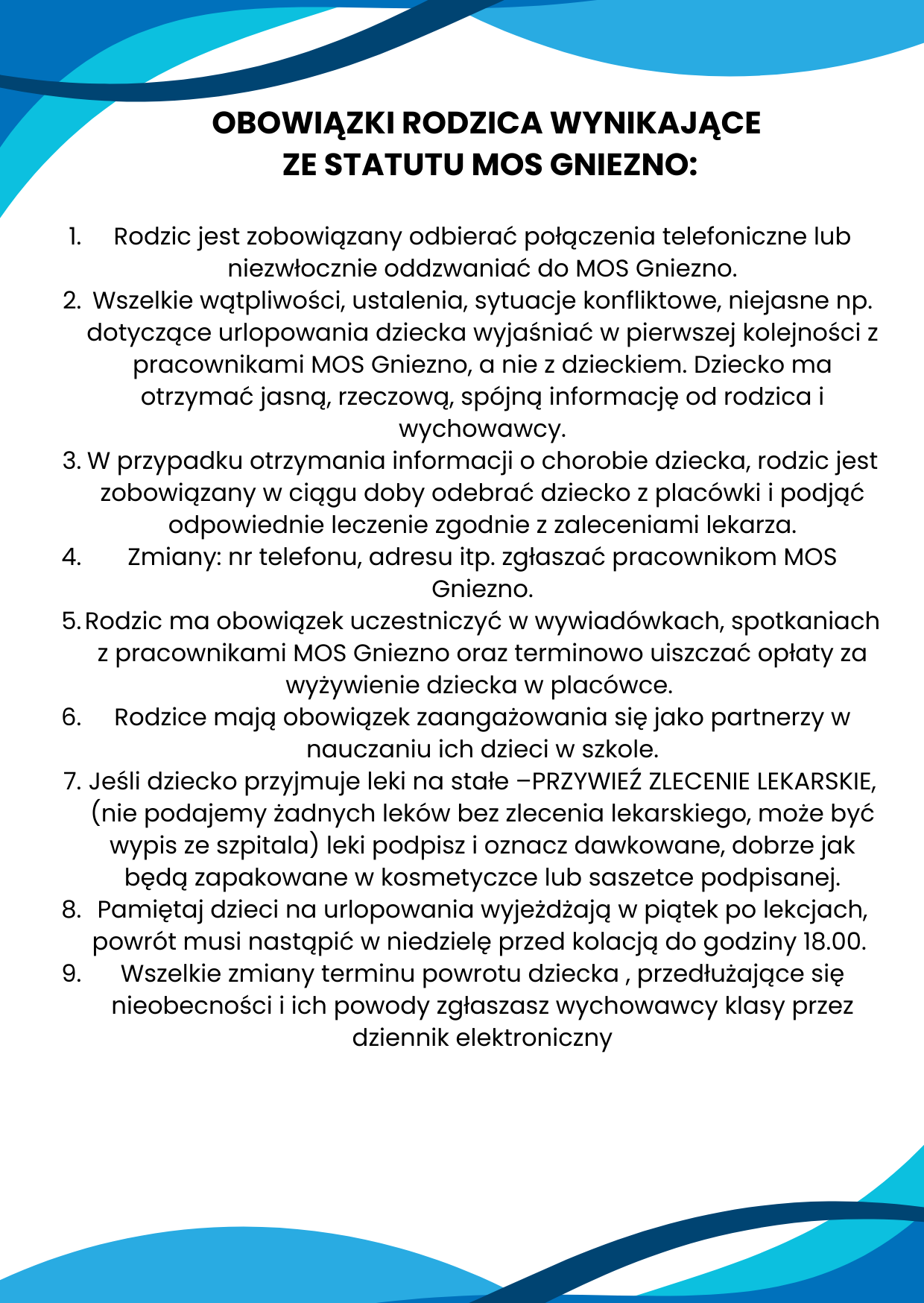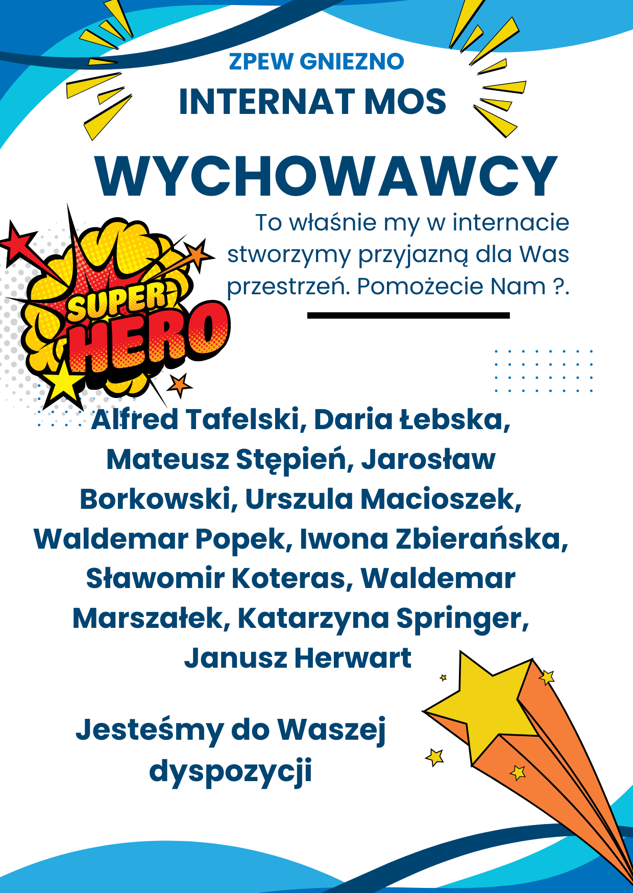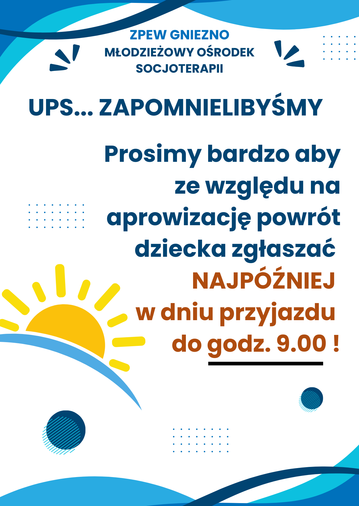 Opublikuj najważniejsze informacje roku bieżącego dla mieszkańców internatu i ich opiekunów prawnych